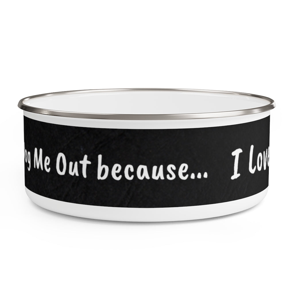 Don't Dog Me Out because... I Love to Snack Enamel Bowl