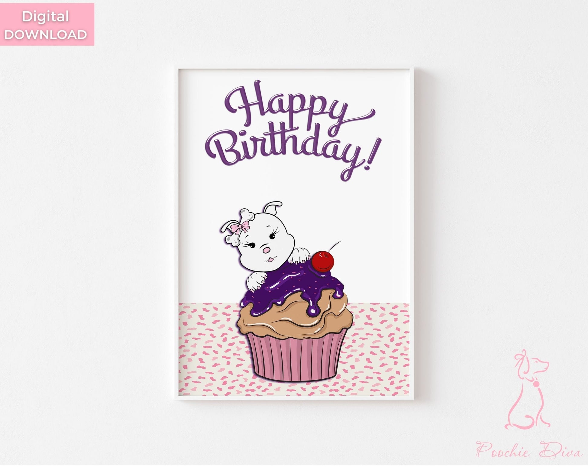 Happy Birthday “Diamond” Dog and Cupcake Wall Art Sign | Dog Wall Art | Dog Lover Sign | Birthday Wall Art | Dog Lover Gift