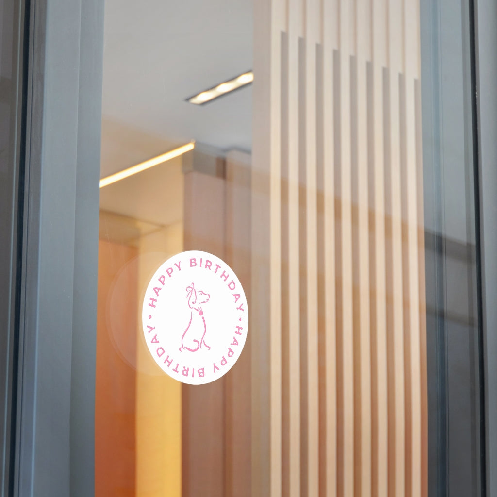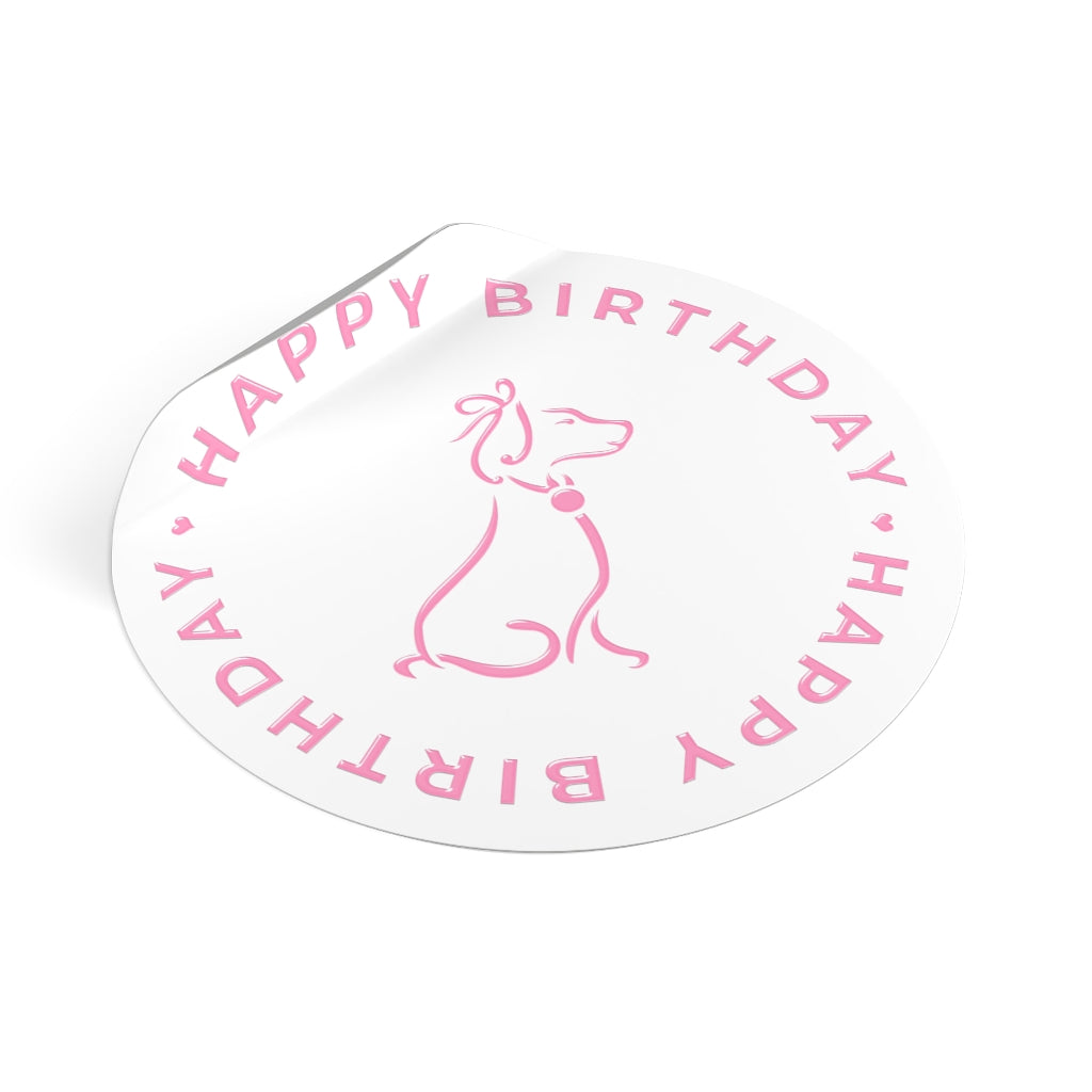 Pink Poochie Diva's Happy Birthday On White Round Vinyl Stickers