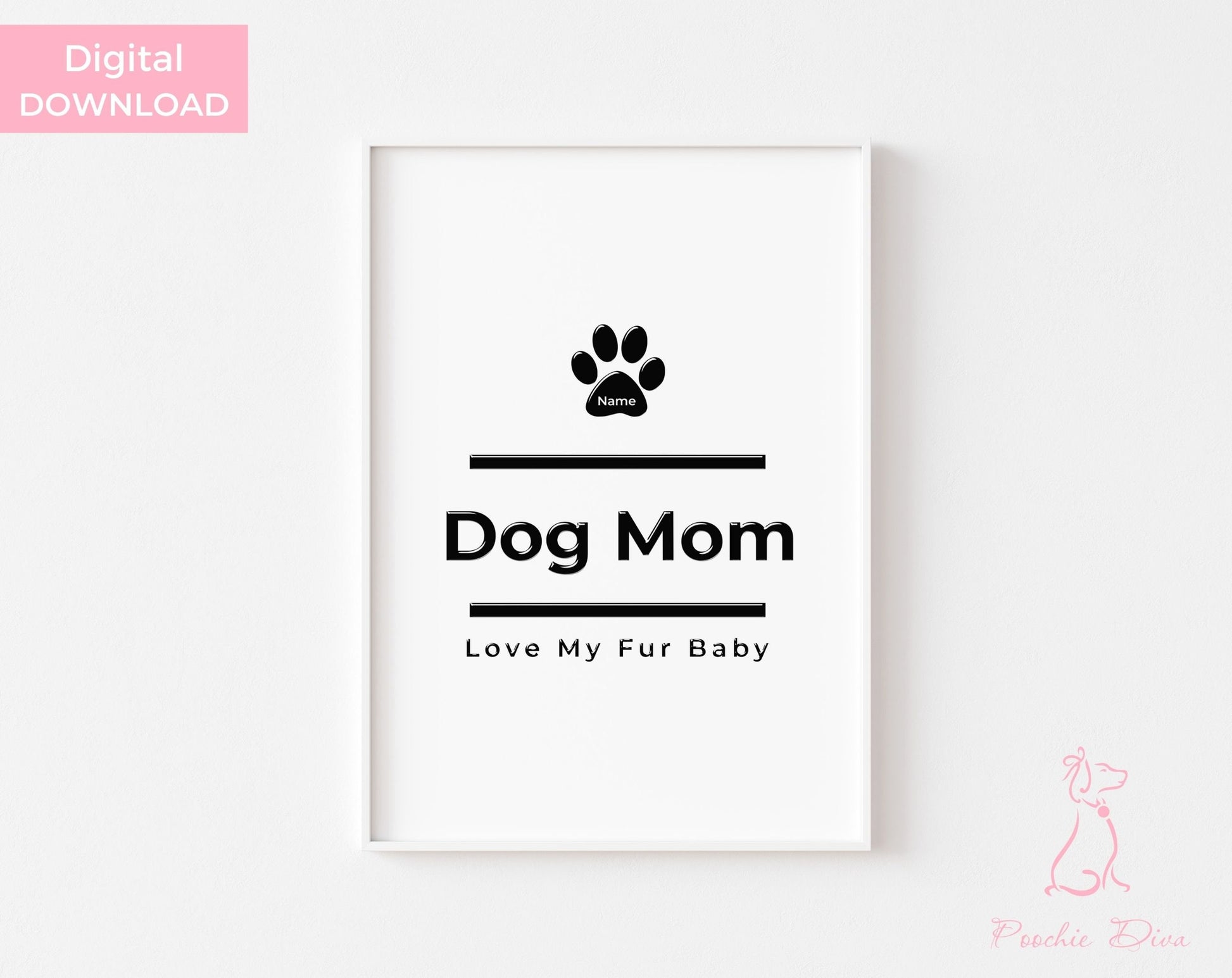 Poochie Diva's Dog Mom Wall Art Print | Wall Art Pet Print | Dog Wall Art | Fur Baby | Dog Lover Gift | Dog Mom Art | Digital Download