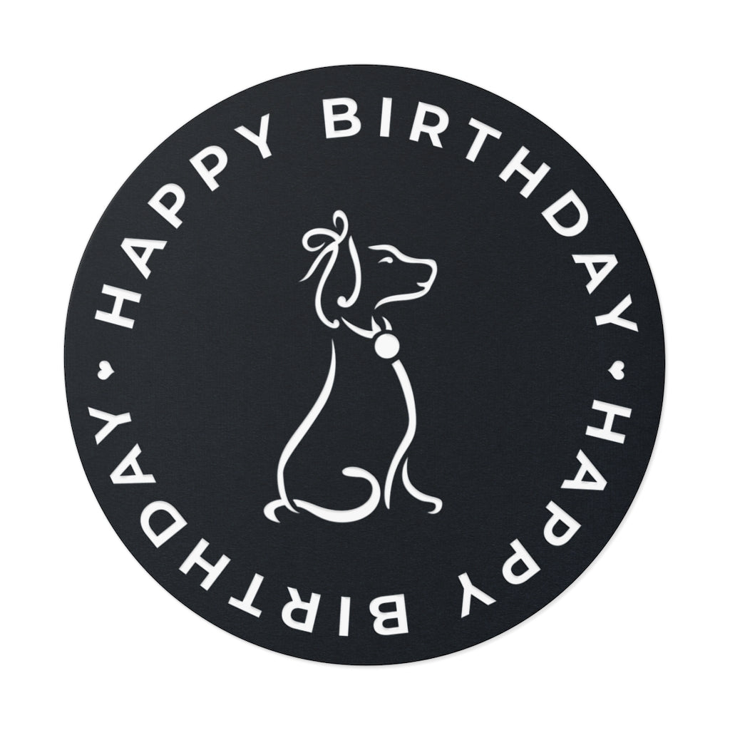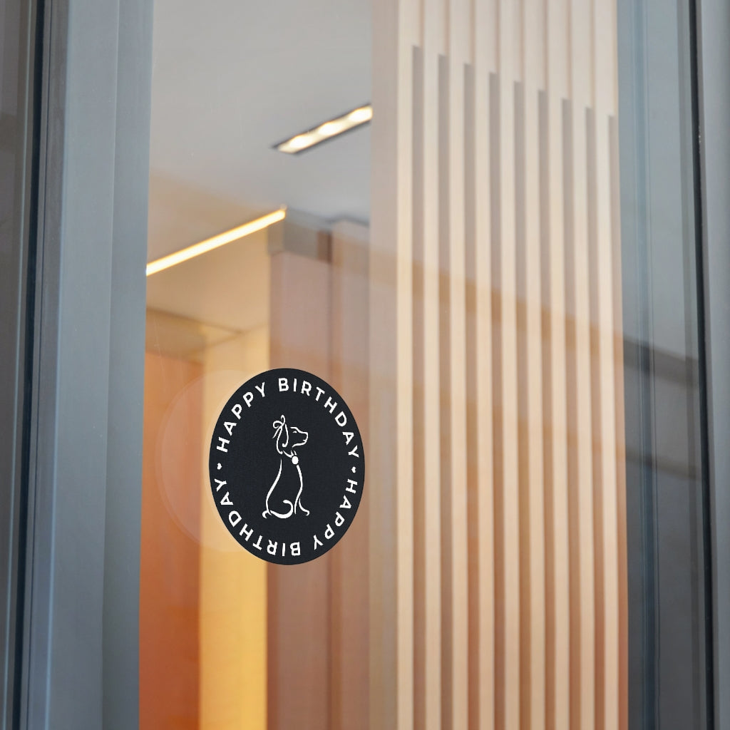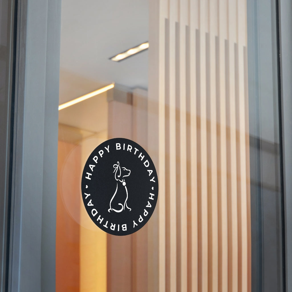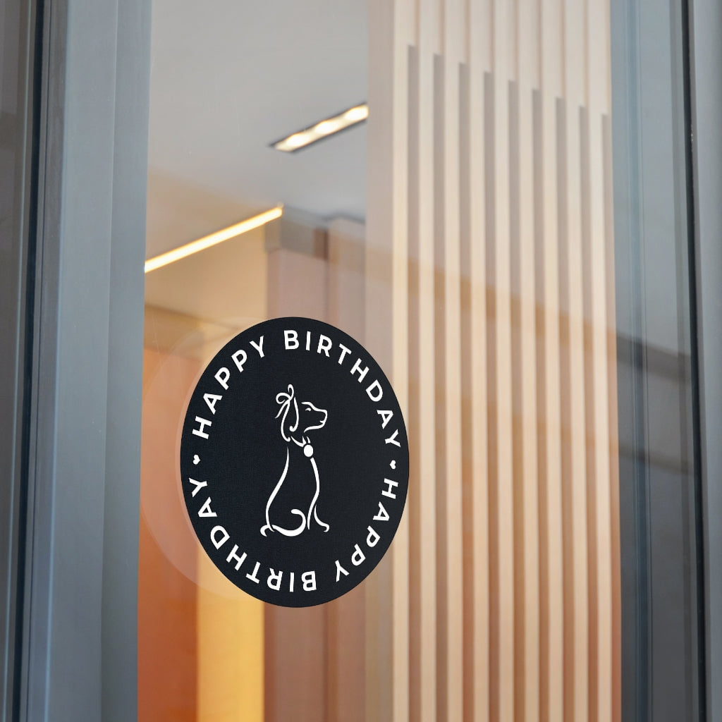 Poochie Diva's Happy Birthday On Black Round Vinyl Stickers