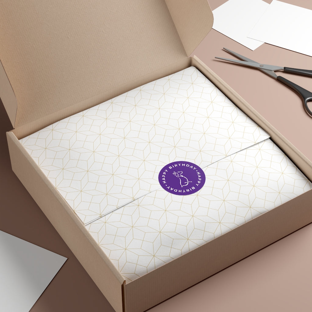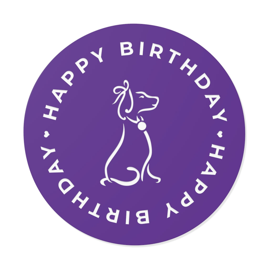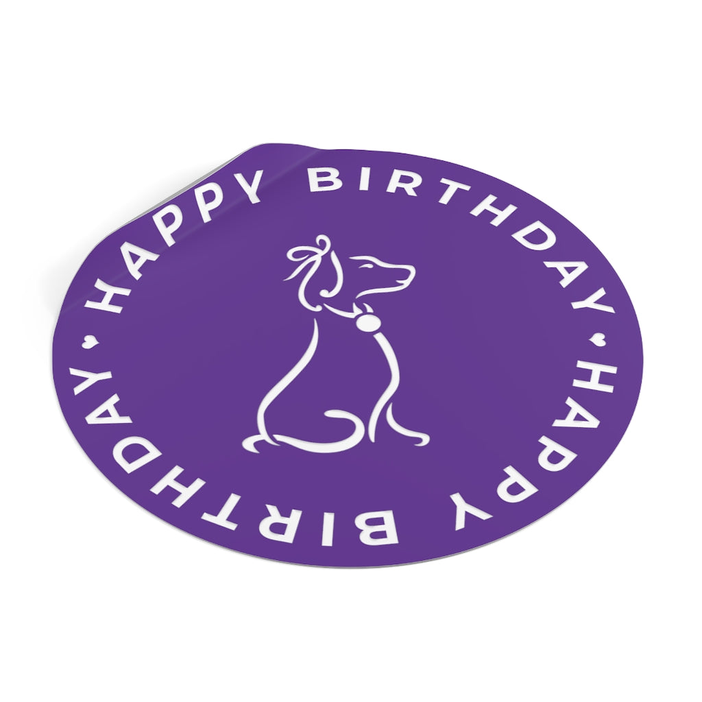 Poochie Diva's Happy Birthday On Purple Round Vinyl Stickers